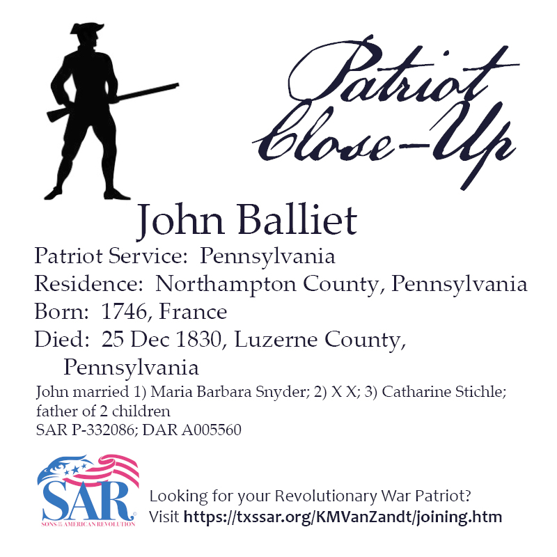 P-332086 / A005560 b. 1746 FRANCE d. 1831 PA bur. in PA |