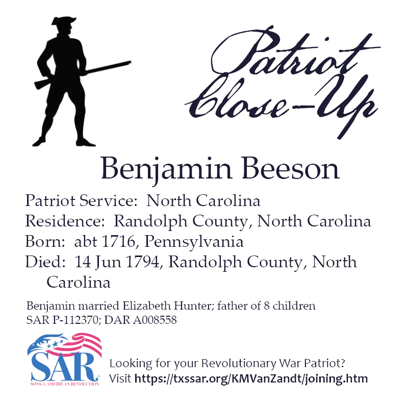 P-112370 b. 1716 PA d. 1794 NC bur. in Centre Friends Meeting Cem., Greensboro, Guilford Co., TX |