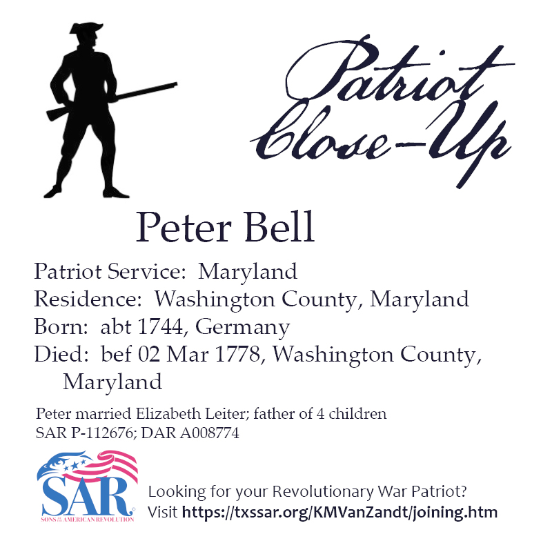 P-110338 / A007278 b. 1755 MD d. 1814 MD bur. in Allegany Co., MD |