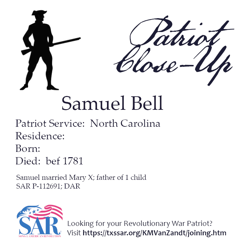 P-116214 / A011136 b. abt 1749 VA d. aft 1816 NC bur. in NC |
