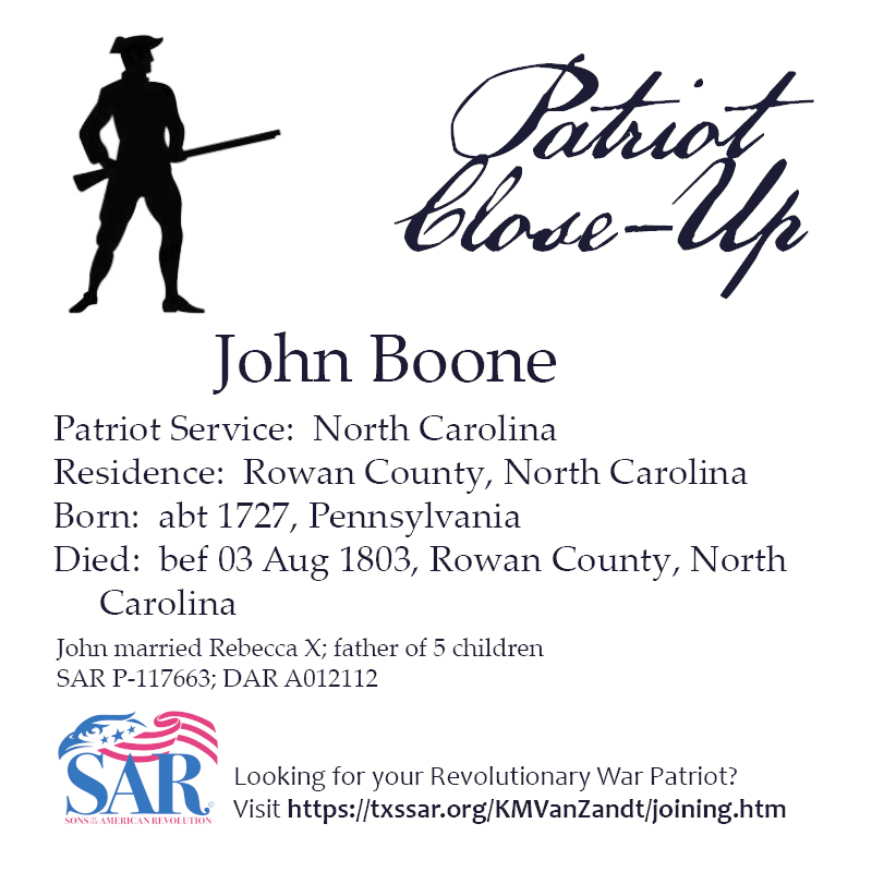 | Barber, John | P-108490 / A005869 b. 1738 NC d. bef 1784 NC bur. in Anson Memorial Park, Wadesboro, Anson Co., NC |
