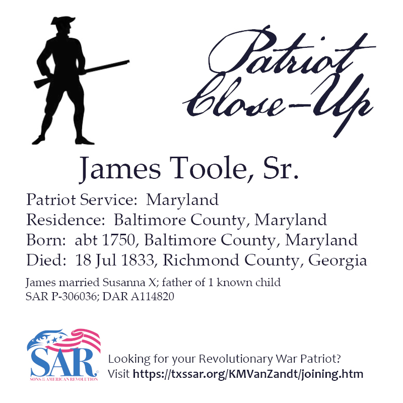 P-306036 / A114820 b. abt 1750 MD d. 1833 GA bur. in Summerville Cem., Augusta, Richmond Co., GA |